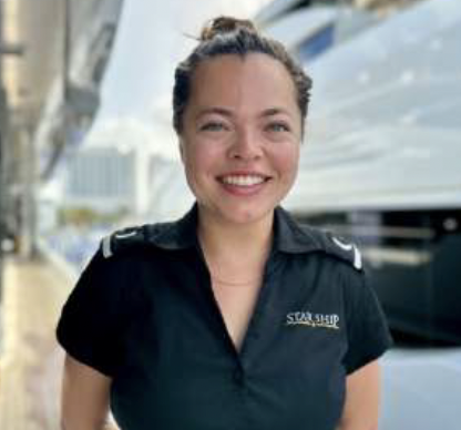 South African/American. Mikaela was born in Westville, South Africa and has recently become a US Citizen. She studied Culinary Arts and Advanced Pastry in South Africa. Because of her love for the ocean, people, food and travel she was soon introduced to the yachting industry by her uncle. During Mikaela’s 9 years in the industry, she has been lucky enough to visit places such as Cuba, Bahamas, Central America, French Polynesia, Tonga and Fiji. Her love and respect for the ocean continues to grow. She looks forward to creating a memorable experience for you and your Family on board motor yacht Starship! Fun fact, Miks has worked with Captain Steve on both Starships!